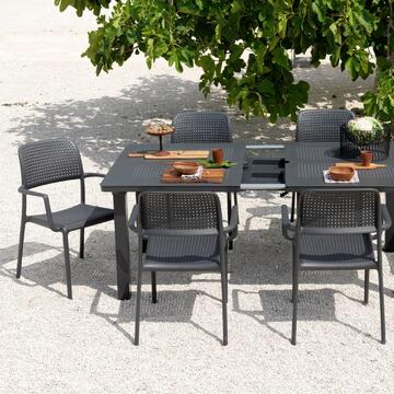 Rendi il tuo spazio esterno ancora più elegante e funzionale con la sedia antracite in polipropilene di Nardi! Grazie ai suoi comodi braccioli e alla sua funzionalità impilabile, questa sedia è la scelta perfetta per chi cerca di conferire uno stile moderno e avanguardista al proprio giardino, terrazzo, ristorante o agriturismo. Non importa dove la utilizzerai, questa sedia sarà sempre la scelta giusta per dare quel tocco di stile che cercavi.